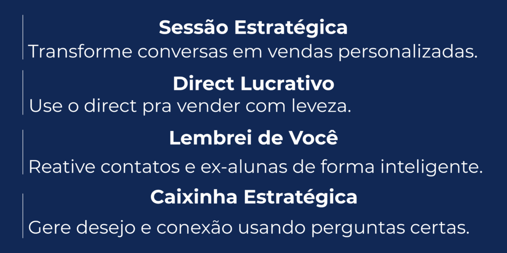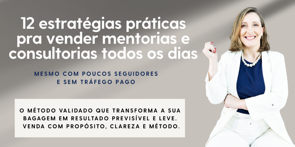 Um curso completo, com 12 estratégias validadas pra você transformar seu conteúdo, suas conversas e sua rotina em um sistema real de vendas — simples, humano e constante.