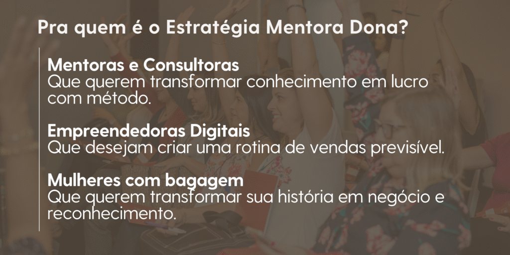 Dentro do Estratégia$ Mentora DONA, você vai aprender:
